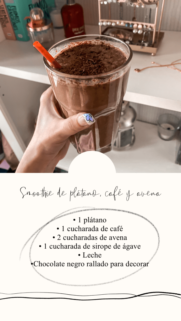 ¡Hola, hola! Como os comenté en el post de ayer, estoy a tope con todo el tema healthy y haciendo recetitas y tal 🙂 ¡Así que hoy para merendar me he hecho un súper smoothie de plátano, café y avena!